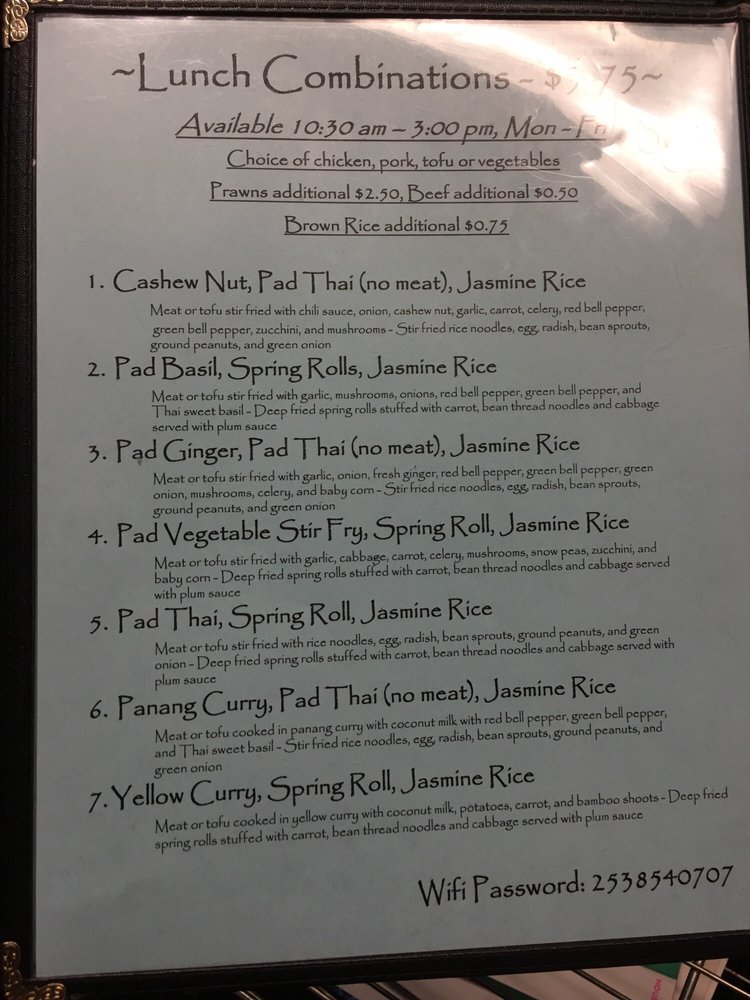 Introducing the menu at Ting Tong Thai Cafe in Kent, a delightful Thai restaurant offering a variety of options for all preferences. From flavorful soups like Beef Noodle Soup and Curry Noodle Soup to delectable appetizers like Coconut Breaded Prawns and Crab Wontons, the menu is full of enticing choices. Don't miss out on the refreshing salads such as Larb Salad and Papaya Salad, bursting with fresh ingredients and vibrant flavors. The cafe also caters to dietary needs with Pescatarian and Vegan options available. With a casual and welcoming ambiance, Ting Tong Thai Cafe is the perfect spot for a relaxing meal with friends or family. Don't forget to try their Happy Hour specials and enjoy the experience of dining at this Asian and Women-owned gem in Kent.